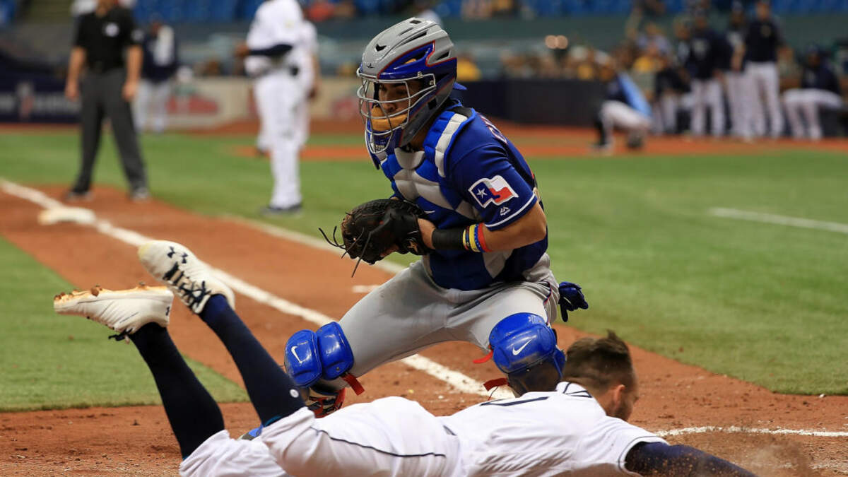 Daniel Robertson's RBI-double sparked a three-run sixth inning as the Rays went on to double up the Rangers 4-2 at Tropicana Field.  C.J. Cron, Adeiny Hechavarria and Denard Span also plated runs for the Rays, who took two-of-three in the series.  Jacob Faria tossed six innings of one-run ball to even his record at 1-and-1.  Alex Colome gave up a run in the ninth but held on for his fourth save.  Shin-Soo Choo homered for the second straight game for Texas, which finished 3-and-3 on its road trip.  Cole Hamels permitted four runs in six-and-a-third frames as he fell to 1-and-3.