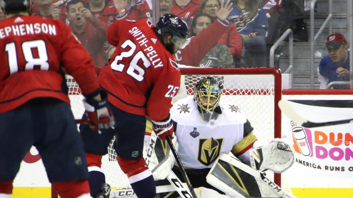 The Washington Capitals are two wins away from hoisting the Stanley Cup for the first time ever. Alex Ovechkin and Evgeny Kuznetsov scored second period goals as the Caps beat the Golden Knights 3-1 in Game Three of the Stanley Cup Final at Capital One Arena. Devante Smith-Pelly added some insurance late in the third period for Washington, which takes a 2-1 lead in the best-of-seven set. Braden Holtby made 21 saves in the victory. Tomas Nosek scored the lone goal in the third period for Vegas. Marc-Andre Fleury allowed three goals on 26 shots in defeat. Game Four is Monday in D.C.