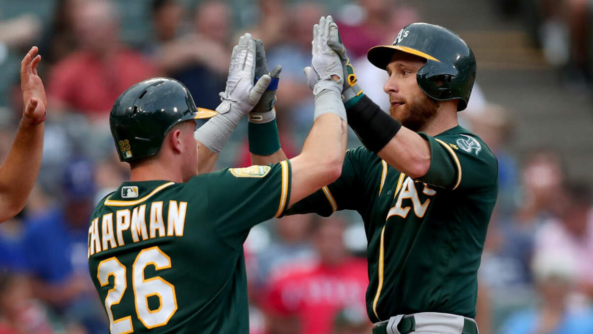 Jonathan Lucroy smacked a grand slam in the second inning as the Athletics roughed up the Rangers 15-3 in Texas.  Matt Chapman added a three-run homer and knocked in  four for Oakland, which won its third straight.  Stephen Piscotty also  went deep and plated three runs in the victory.  Brett Anderson tossed  six innings of two-run ball for the win.  Elvis Andrus hit a two-run  homer for the Rangers.  Cole Hamels was rocked for seven runs in five frames to suffer the loss.