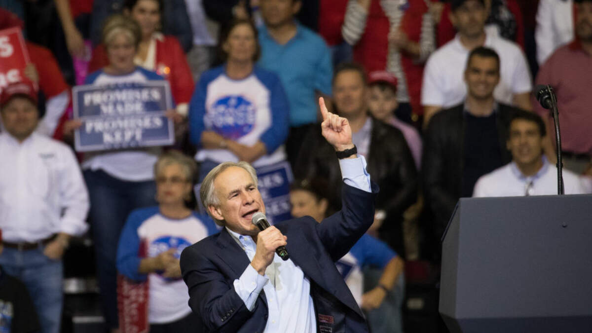 Photo: Governor Greg Abbott speaks at a rally for Senator Ted Cruz headlined by President Donald Trump on October 22, 2018 at the Toyota Center in Houston, Texas. (Getty Images)