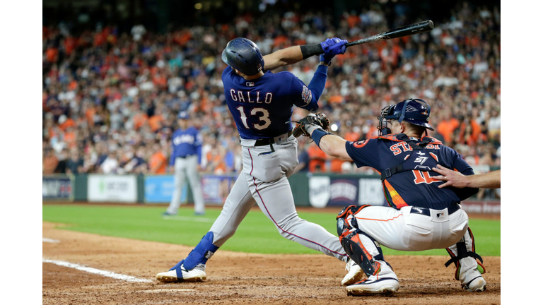 Photo: Joey Gallo takes a swing against the Houston Astros at Minute Maid Park on July 21, 2019 in Houston, Texas. (Getty Images)