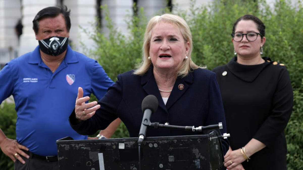 Photo: Representative Sylvia Garcia (D-TX) holds a press conference with officials from LULAC on calling for an investigation into the death of Vanessa Guillen on July 10, 2020 in Washington D.C. (Getty Images)