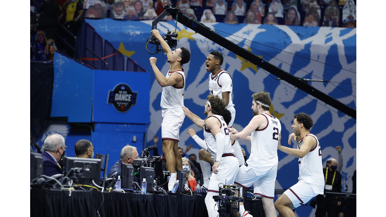 It took one of the most dramatic endings in NCAA Tournament history for the top-seeded Gonzaga Bulldogs to put away the 11th-seeded UCLA Bruins. Jalen Suggs banked home a three-pointer as the buzzer sounded in overtime to lift the 'Zags to a 93-90 win to preserve their pursuit of perfection. Drew Timme had a team-high 25 points and drew the charge that forced overtime. Suggs finished with 16 points for the Bulldogs. Johnny Juzang finished with a game-high 29 points. Earlier in the day, number-one seed Baylor breezed past number-two seeded Houston 78-59 in the other Final Four matchup. Jared Butler had 17 points to lead the Bears while Marcus Sasser had 20 for the Cougars.