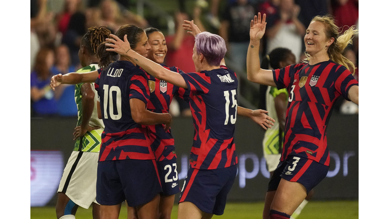 The US Women's National Team debuted their new Dazzle uniforms last night in a 2-0 win over Nigeria. Captain Carli Lloyd earned her 300th cap before getting replaced by Alex Morgan. Christen Press scored the first goal for the US in the second minute of stoppage time before the end of the first half. Lynn Williams chipped in with a second-half-goal scored in the final minute of stoppage time. The match was played in Austin's new Q2 Stadium.