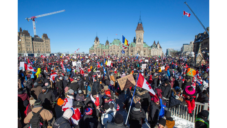 Supporters arrive at Parliament Hill for the Freedom Truck Convoy to protest against Covid-19 vaccine mandates and restrictions in Ottawa, Canada.