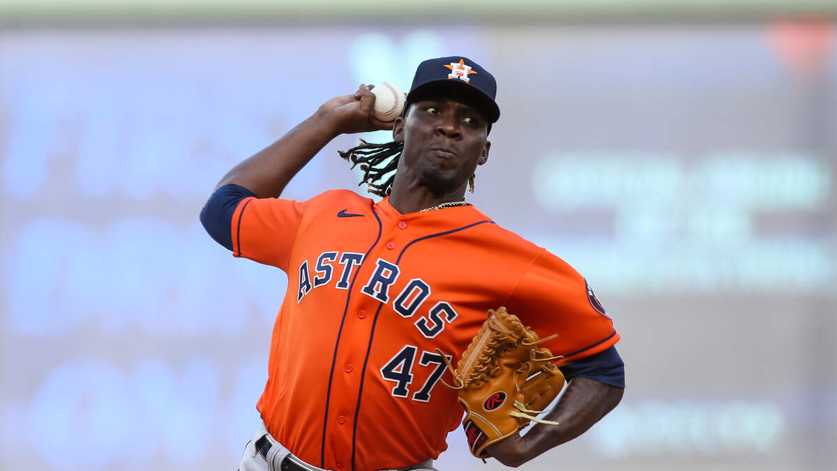 Rafael Montero #47 of the Houston Astros delivers a pitch against the Minnesota Twins in the ninth inning of game two of a doubleheader at Target Field on May 12, 2022 in Minneapolis, Minnesota.