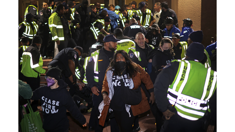 U.S. Capitol Police officers say six Capitol officers suffered minor injuries during protests outside Democratic National Committee headquarters in Washington, D.C. as part of a pro-Palestinian rally Wednesday. Protesters got into a shoving match with Capitol officers, with one arrest being made for assault. Pepper spray was used on protesters, with DNC members evacuated.