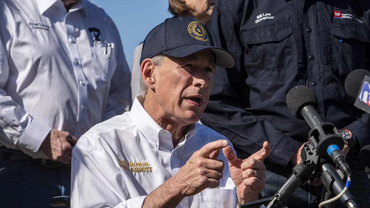 Texas Governor Greg Abbott holds a press conference at Shelby Park in Eagle Pass, Texas, on February 4, 2024.