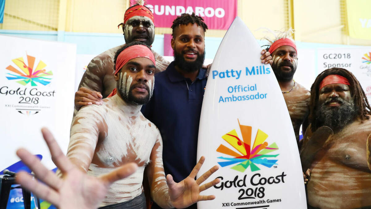 Photo: Patty Mills poses with indigenous dancers in Gold Coast, Australia. Mills has been announced as the seventh official Gold Coast 2018 Commonwealth Games (GC2018) Ambassador. (Photo by Chris Hyde/Getty Images)