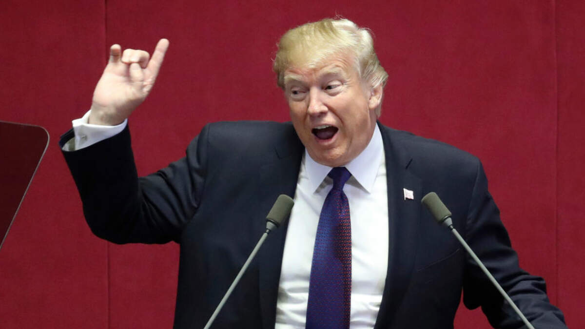 President Trump is condemning what he calls a "twisted regime" in North Korea. Speaking to the South Korean National Assembly tonight, Trump said the North Korean people continue to suffer at the hands of tyrannical leaders. He said the North rewards political loyalty while punishing dissent. Trump also noted that many North Koreans die of hunger.