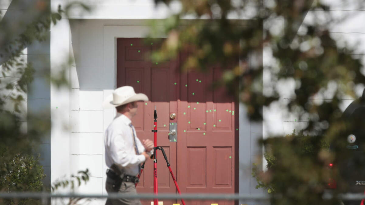 Photo: Bullet holes scar the front door of the First Baptist Church of Sutherland Springs. (Photo by Scott Olson/Getty Images)