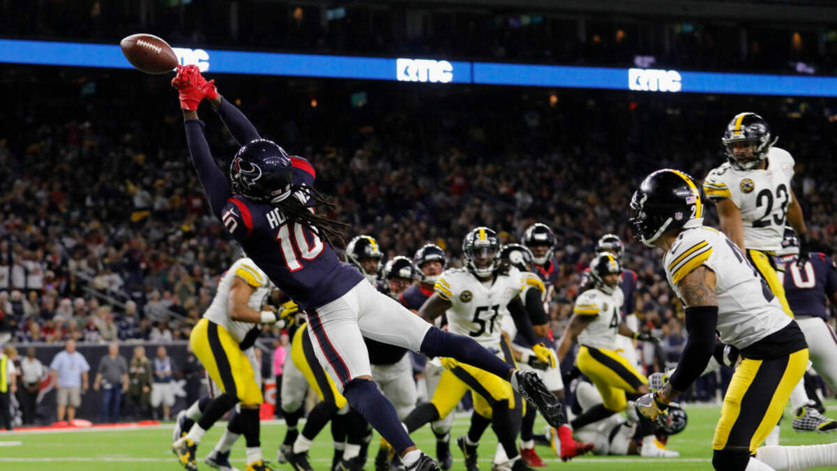 The Steelers locked up a first round bye in the playoffs with a 34-6 win over the Texans on Christmas in Houston. Ben Roethlisberger threw two touchdowns and left the game midway through the fourth quarter when the outcome was well in hand. JuJu Smith-Schuster and Justin Hunter were on the receiving end of the scores. Le'Veon Bell and Roosevelt Nix rushed for touchdowns as Pittsburgh improved to 12-and-3. DeAndre Hopkins' circus catch in the fourth quarter accounted for the lone Texans score. T.J. Yates was sacked seven times and turned the ball over twice for Houston as it fell to 4-and-11. Alfred Blue rumbled for 108 yards in defeat.