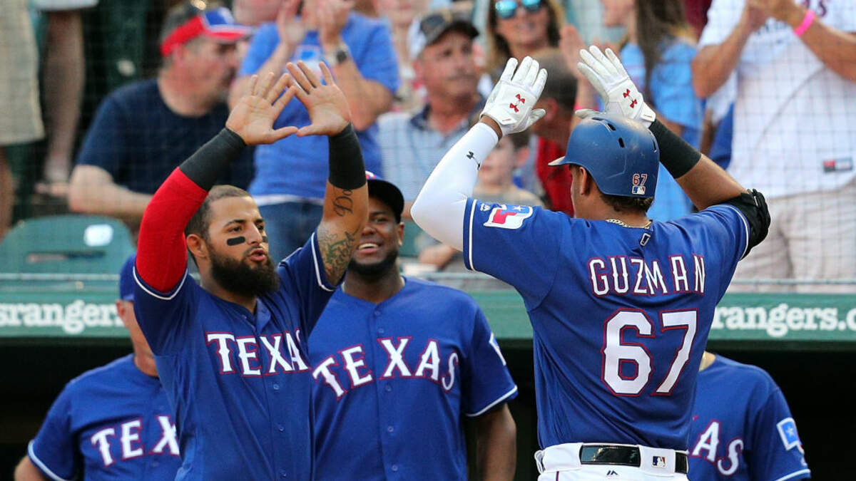 The Rangers overcame 4-0 and 10-5 deficits to outslug the Yankees 12-10 at Globe Life Park. Jurickson Profar's three-run double capped a four-run sixth that put Texas ahead 11-10. Nomar Mazara hit a two-run homer and Ronald Guzman a three-run shot for the Rangers. Alex Claudio got the win and Keone [[ kay-OH-nay ]] Kela his 10th save. David Robertson took the loss for New York. Starters Doug Fister and CC Sabathia both failed to get through the fifth inning. Didi Gregorius, Neil Walker, Gleyber Torres and Aaron Judge all homered for the Yankees.