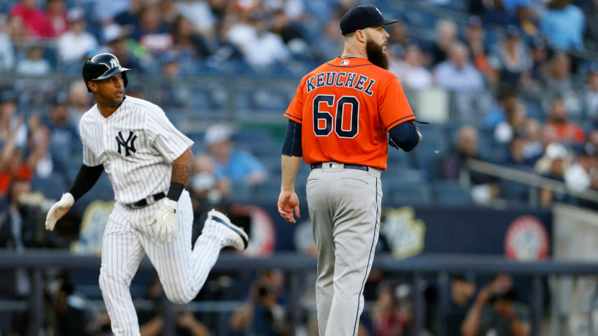 Gary Sanchez singled in two runs in the fifth inning to erase a 2-1 deficit and the Yankees went on to beat the Astros 5-3 in New York. Didi Gregorius had an RBI single and Aaron Hicks a run-scoring double in the sixth to extend the lead to 5-2. Luis Severino struck out 11 over seven innings of two-run ball to improve to 8-and-1. Aroldis Chapman gave up an RBI double to Max Stassi in the ninth before posting his 12th save as New York took two-of-three. Dallas Keuchel fell to 4-and-7 with the loss. Stassi also hit a two-run homer for Houston.
