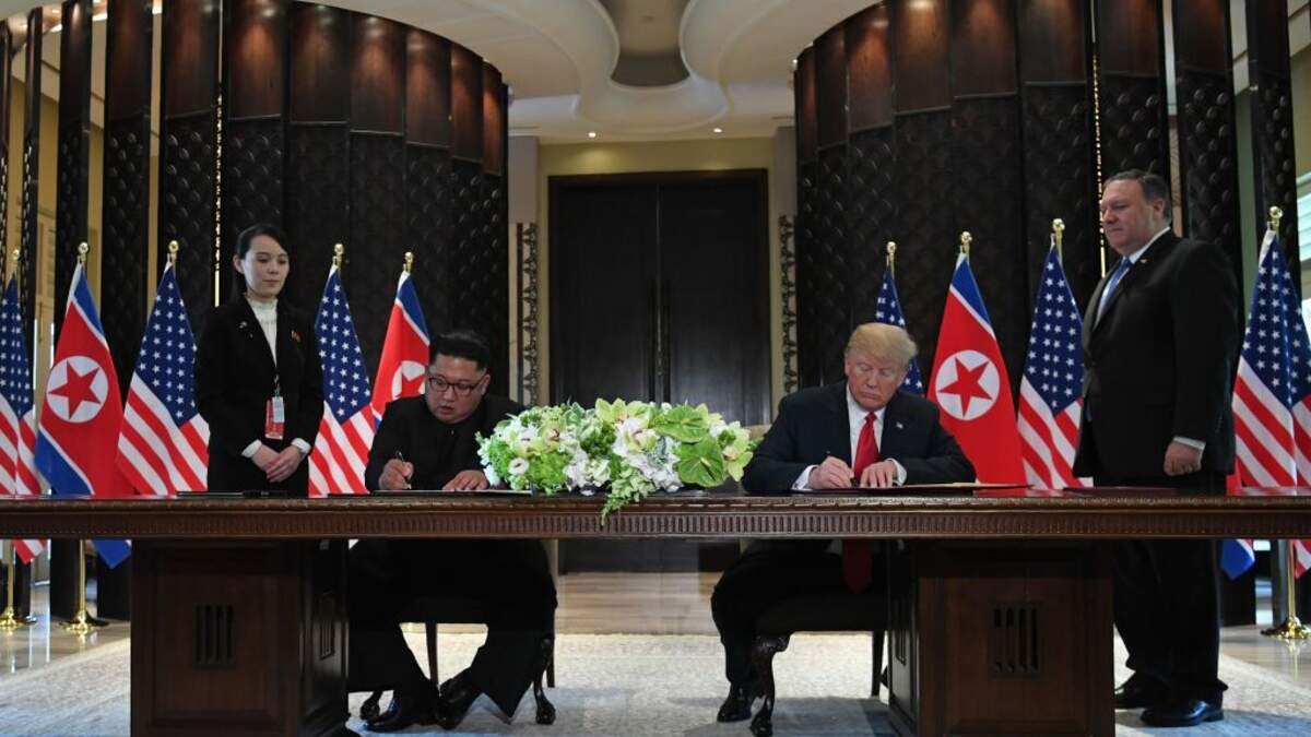 President Donald Trump and North Korean leader Kim Jong Un have signed a document at the end of their historic summit. The contents of the document are unclear, but Trump said it was "very comprehensive." The joint signing came after the two leaders met behind closed doors in Singapore. Trump said he thinks he'll meet with Kim many more times, calling him a talented individual who loves his country.