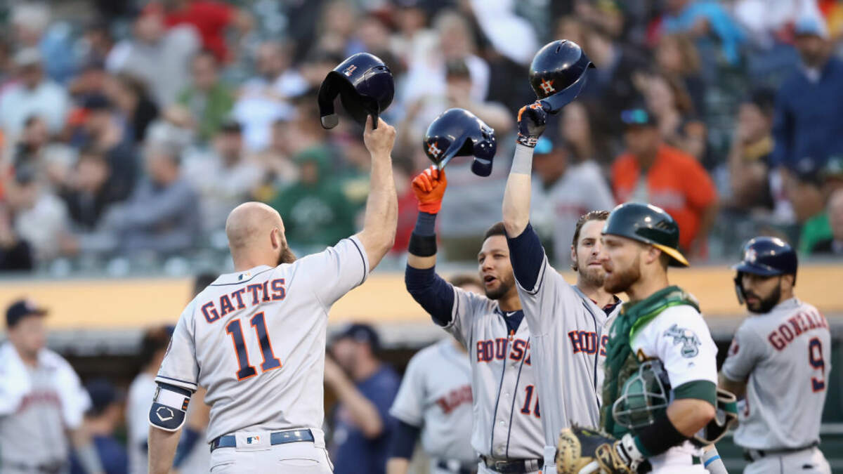 Evan Gattis homered twice and drove in five as the Astros crushed the A's 13-5 in Oakland. The Astros led 10-0 after two innings. Carlos Correa laced a two-run triple, while Marwin Gonzalez and Jake Marisnick left the yard. Gerrit Cole earned his eighth win for Houston. Khris Davis homered twice for Oakland, and Stephen Piscotty went deep as well. Paul Blackburn got chased in the second inning and took the loss. The A's try to prevent the three-game sweep on Thursday.