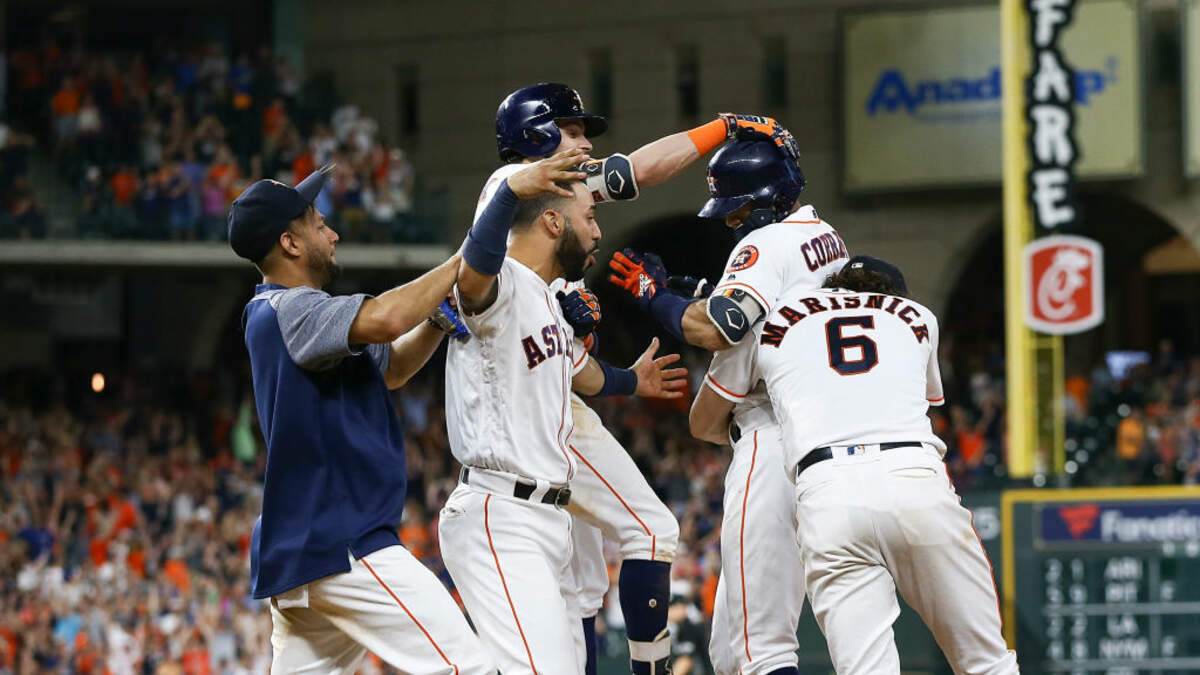 Carlos Correa singled in the walk off run in the 12th inning as the Astros knocked off the Royals 4-3 in Houston. Evan Gattis hit a sac-fly in the ninth to force extra innings for the 'Stros. Collin McHugh struck out the side in the top-of-the-12th to get the win. Houston sits atop the AL West at 51-and-27. Hunter Dozier crushed a three-run homer in the fourth to give a Kansas City a 3-0 lead. Justin Grimm was charged with the loss after he served up the winning run. The Royals have dropped 10 of their last 11 to fall to 23-and-53.