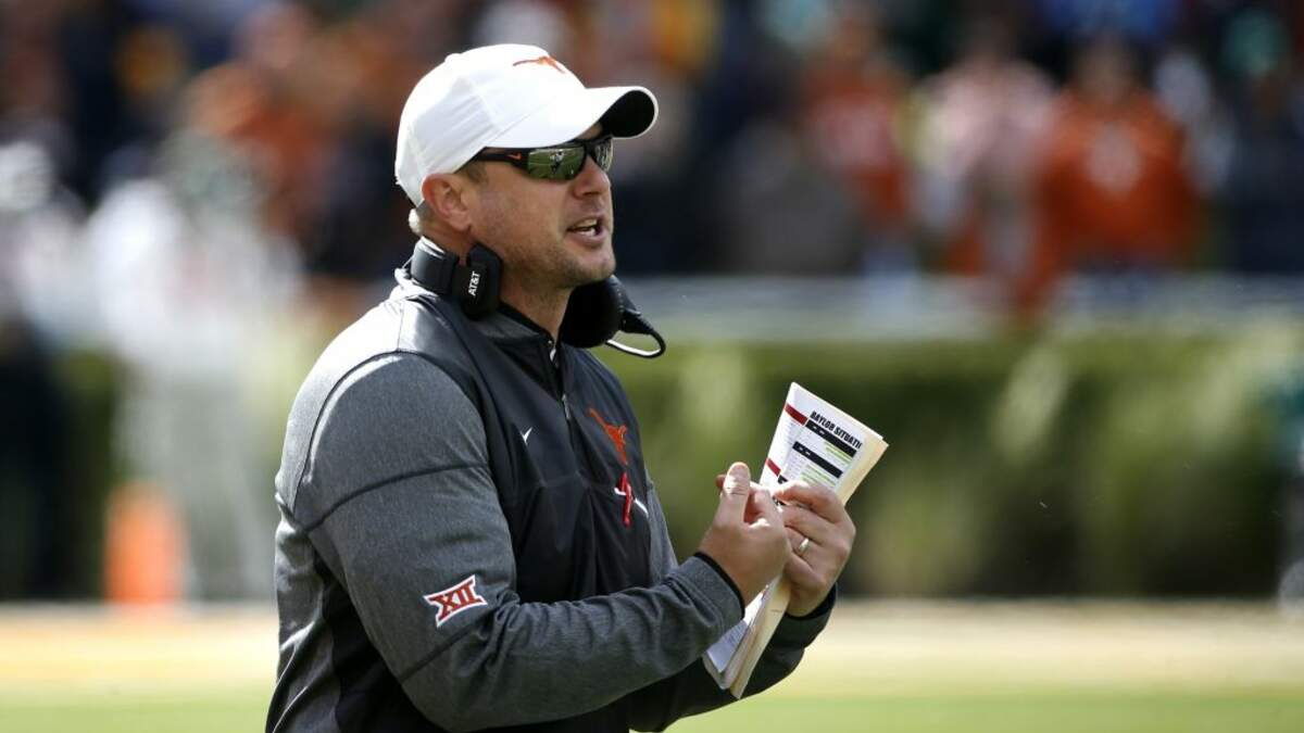 Texas is picked to finish fourth in the Big 12 pre-season football media poll. Oklahoma is the overwhelming choice to win the conference with West Virginia second and the TCU Horned Frogs third. Then comes Texas in fourth. Texas Tech finishes eighth and Baylor ninth in the balloting.