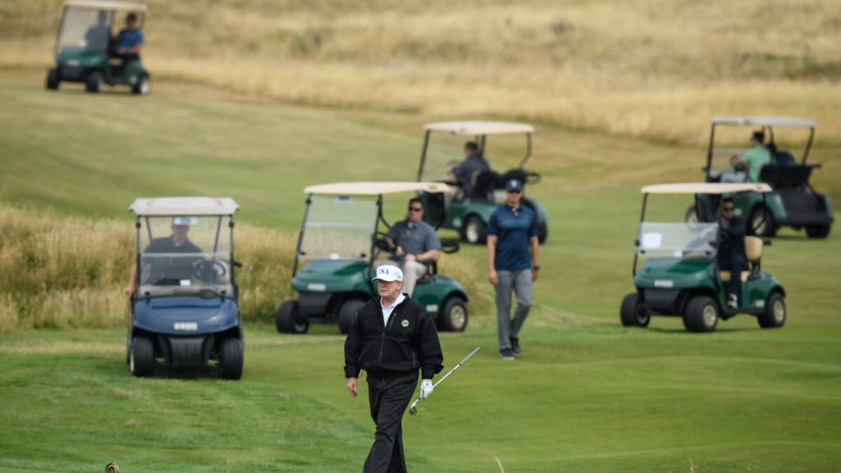 President Trump is spending the weekend in Scotland ahead of his high-stakes summit with Russian President Putin. Trump got in a round of golf today as protestors rallied near his seaside golf resort in Turnberry. Trump said Friday that he plans to bring up new election meddling charges when he meets with Putin in Helsinki. Federal indictments announced in Washington accused a dozen Russian intelligence officials of trying to influence the U.S. presidential election.