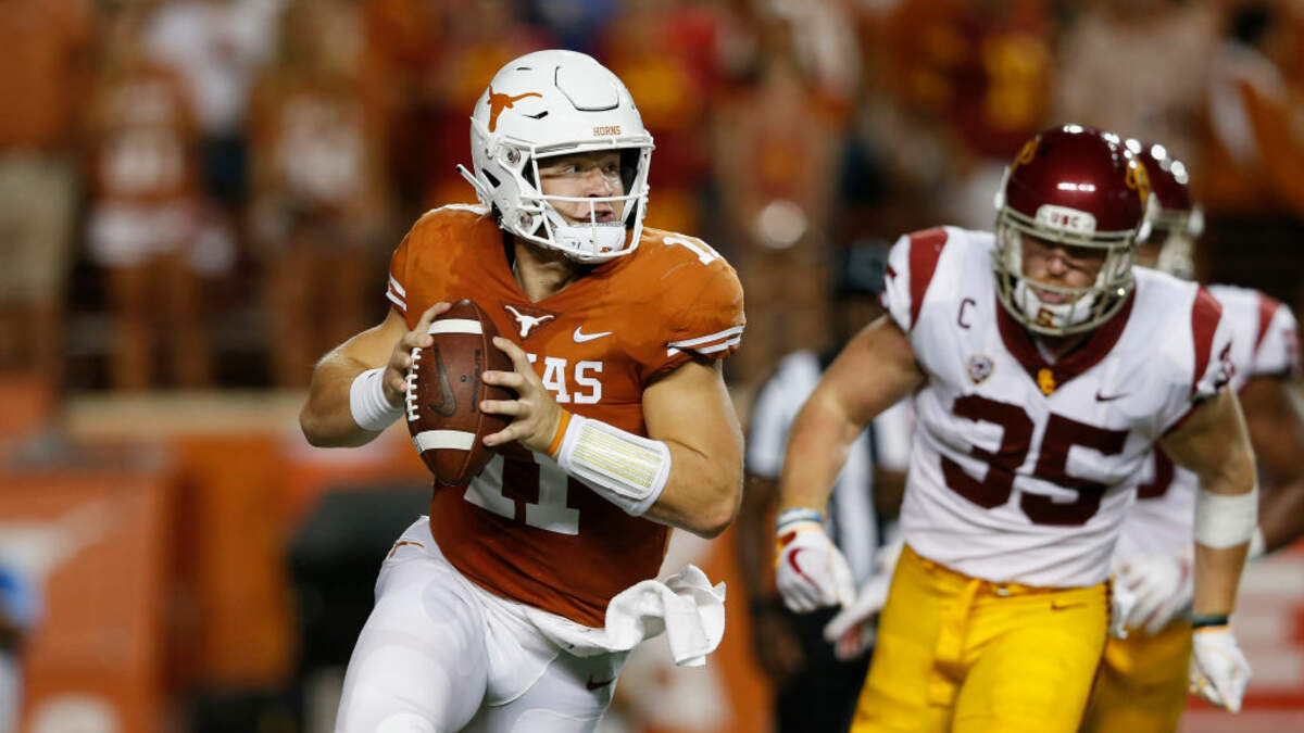 Sam Ehlinger threw two touchdowns and ran for a third as Texas upended 21st-ranked USC 37-14 in Austin. Lil'Jordan Humphrey and Joshua Moore were on the end of the receiving touchdowns for the Longhorns. Texas held the Trojan running game to negative-five yards on 16 carries to go along with three sacks and 10-and-a-half tackles for loss. The Longhorns improved to 2-and-1. JT Daniels threw for 322 yards with no touchdowns and an interception for the Trojans as they fell to 1-and-2. Stephen Carr and Vavae Malepeai ran for touchdowns in defeat.