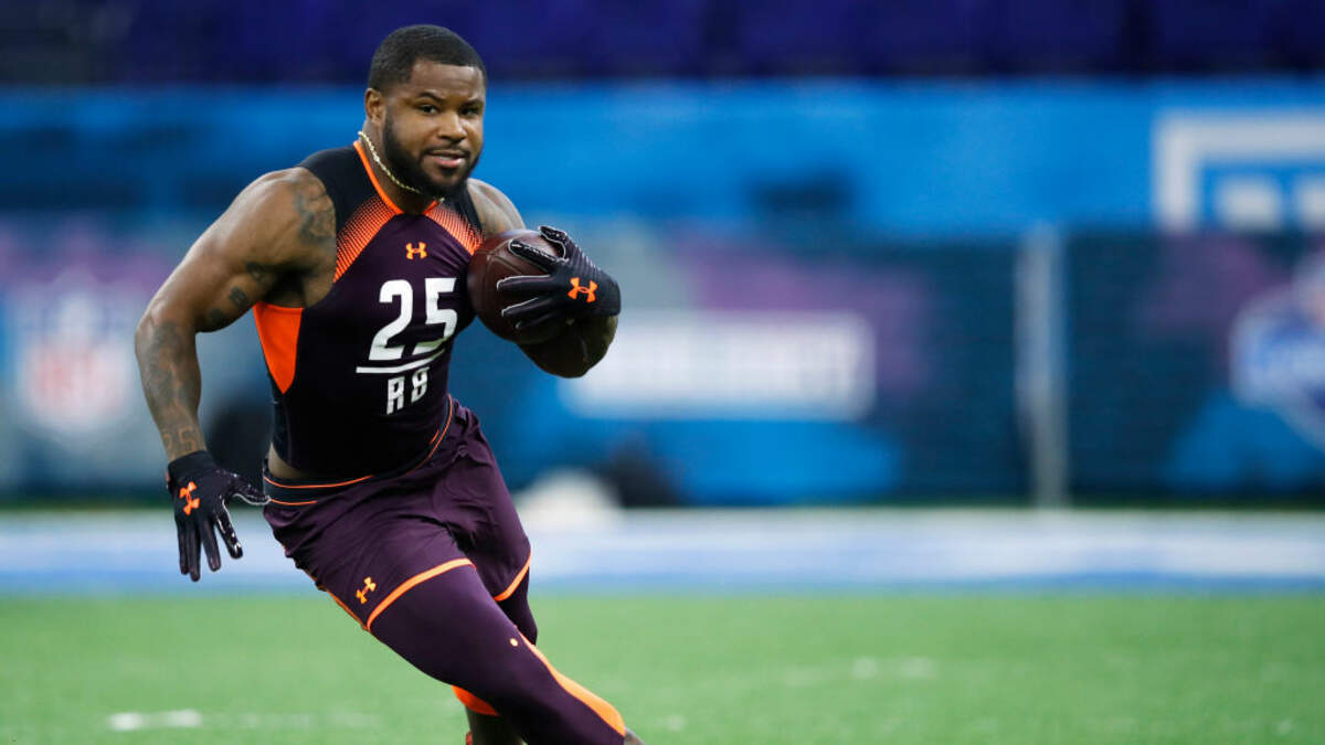 Photo: Running back Mike Weber works out during day two of the NFL Combine at Lucas Oil Stadium on March 1, 2019 in Indianapolis, Indiana. (Getty Images)