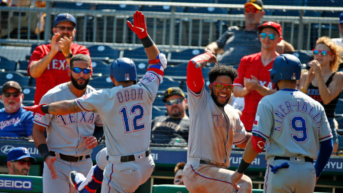 The Rangers put up seven runs in the final two innings to rally past the Pirates 9-6 in Pittsburgh. Pinch-hitter Hunter Pence smacked a game-tying grand slam in the eighth inning, while Isiah Kiner-Falefa doubled in the go-ahead run in the ninth. Rougned Odor capped the rally with a two-run homer as Texas earned a split the two-game series. Joey Gallo's two-run homer in the third inning made him the fastest player in American League history to reach 100 career home runs. Ariel Jurado was credited with the win and Chris Martin earned his first save. Josh Bell and Colin Moran went deep for the Bucs, who had won their previous three. Tyler Lyons suffered his first loss.