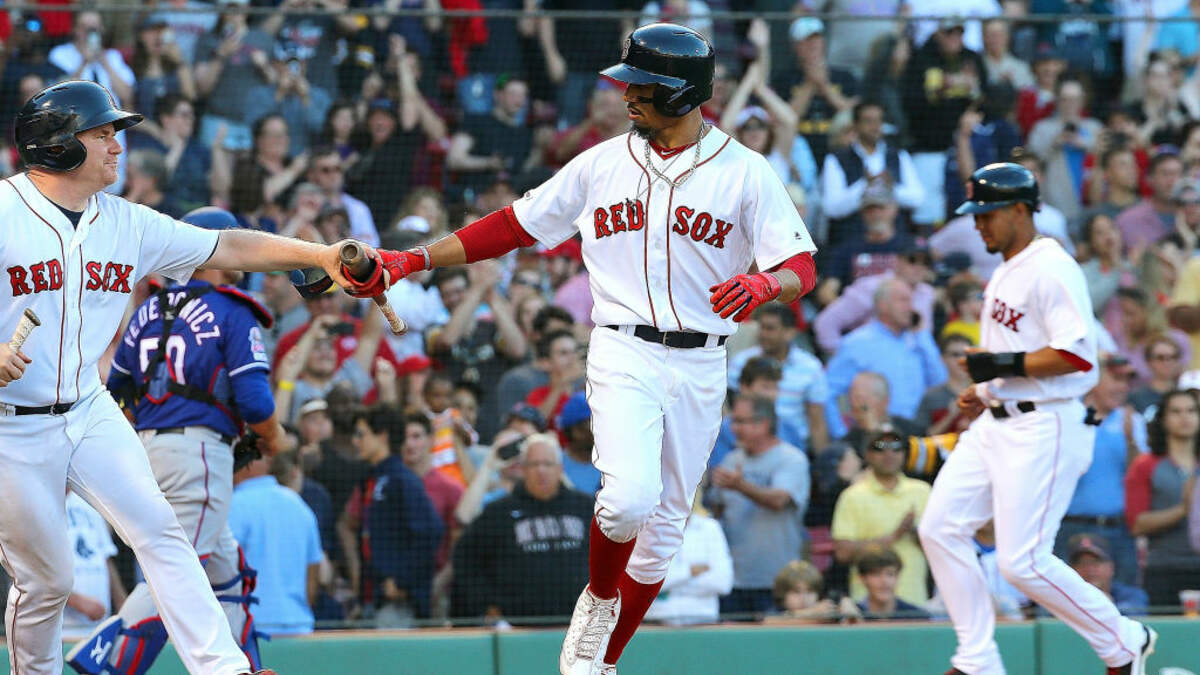 Mookie Betts walked with the bases loaded in the ninth to bring home the winning run in a 4-3 Red Sox walk-off victory over the Rangers at Fenway Park. Christian Vazquez doubled and Jackie Bradley Jr. singled to open the inning. Andrew Benintendi tripled, doubled and drove in the first three Boston runs. The Red Sox snapped a three-game skid. Hunter Pence pelted a two-run double in the first for Texas. Elvis Andrus tied the score at three with an eighth-inning sacrifice fly. Texas is 4-and-2 in its last six games.