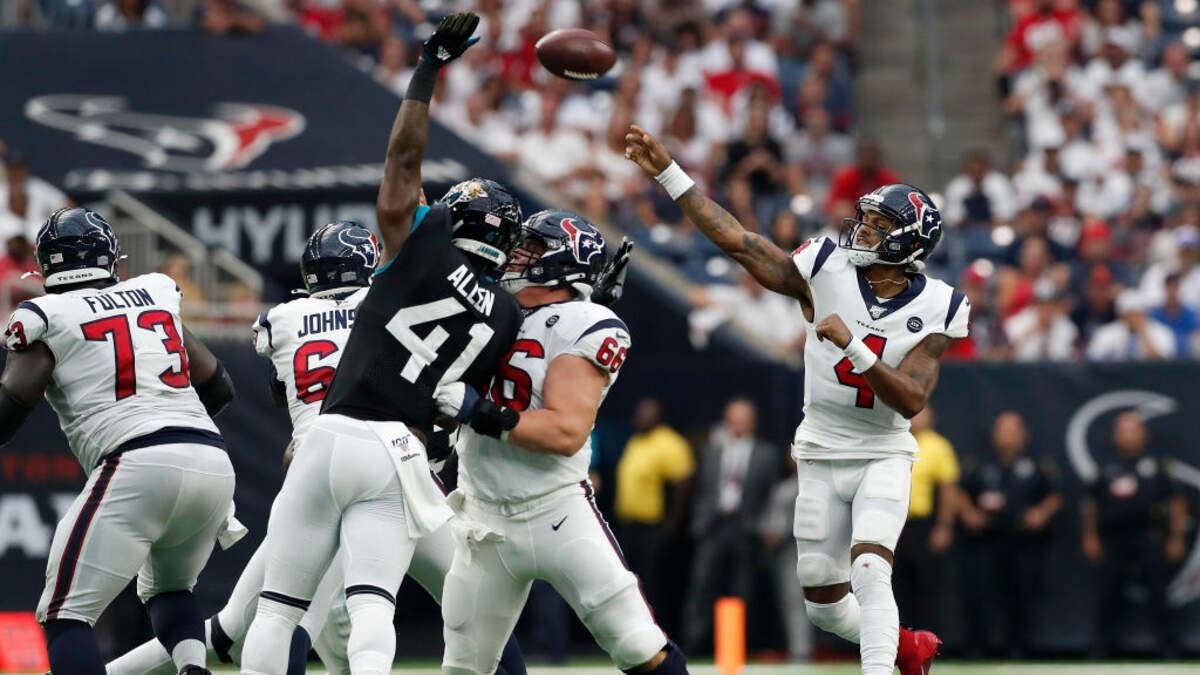 The Houston Texans edged the Jacksonville Jaguars 13-12 on Sunday. The Jaguars pulled within one of the Texans in the final minute of the game, but failed on a two-point conversion, handing the Texans the win. Deshaun Watson was 16-for-29 passing for 159 yards. He also rushed for a touchdown. Carlos Hyde ran for 90 yards on 20 carries.