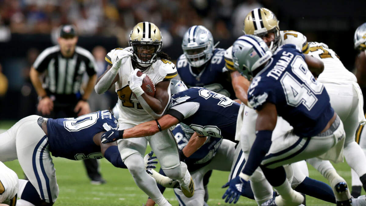 Will Lutz nailed four field goals as the Saints edged the Cowboys 12-10 on Sunday Night Football in New Orleans. Saints safety Vonn Bell recovered a pair of fumbles as they came out on top in a defensive battle. Teddy Bridgewater threw for 193 yards and overcame five sacks and an interception as the Saints improved to 3-and-1. Ezekiel Elliott scored the game's only touchdown on a one-yard run in the third quarter that put Dallas up by one. Dak Prescott passed for 223 yards and a game-ending interception as the Cowboys fell to 3-and-1.