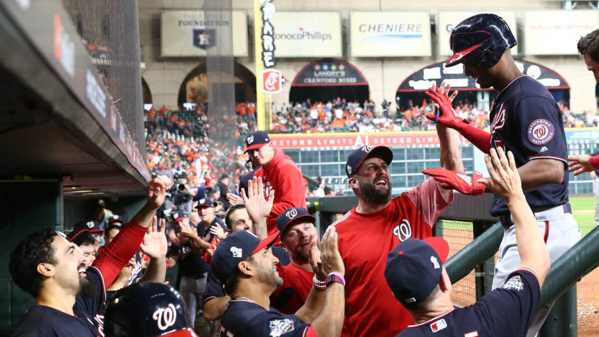 Photo: Michael A. Taylor #3 of the Washington Nationals hits a solo home run against the Houston Astros during the ninth inning in Game Two of the 2019 World Series at Minute Maid Park on October 23, 2019 in Houston, Texas. (Getty Images)