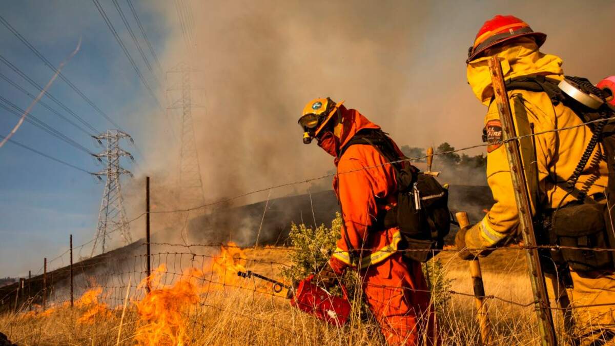 Photo: Getty Images - Firefighters set a back fire along a hillside near PG&E power lines during firefighting operations to battle the Kincade Fire in Healdsburg, California on October 26, 2019. - US officials on October 26 ordered about 50,000 people to evacuate parts of the San Francisco Bay area in California as hot dry winds are forecast to fan raging wildfires. (Photo by Philip Pacheco / AFP)