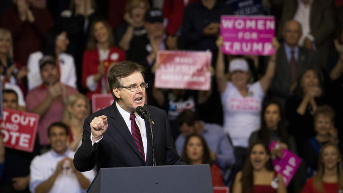 Photo: Lieutenant Governor Dan Patrick speaks at a rally in support of Texas Senator Ted Cruz on October 22, 2018. President Donald Trump addressed the crowd following Patrick. (Getty)