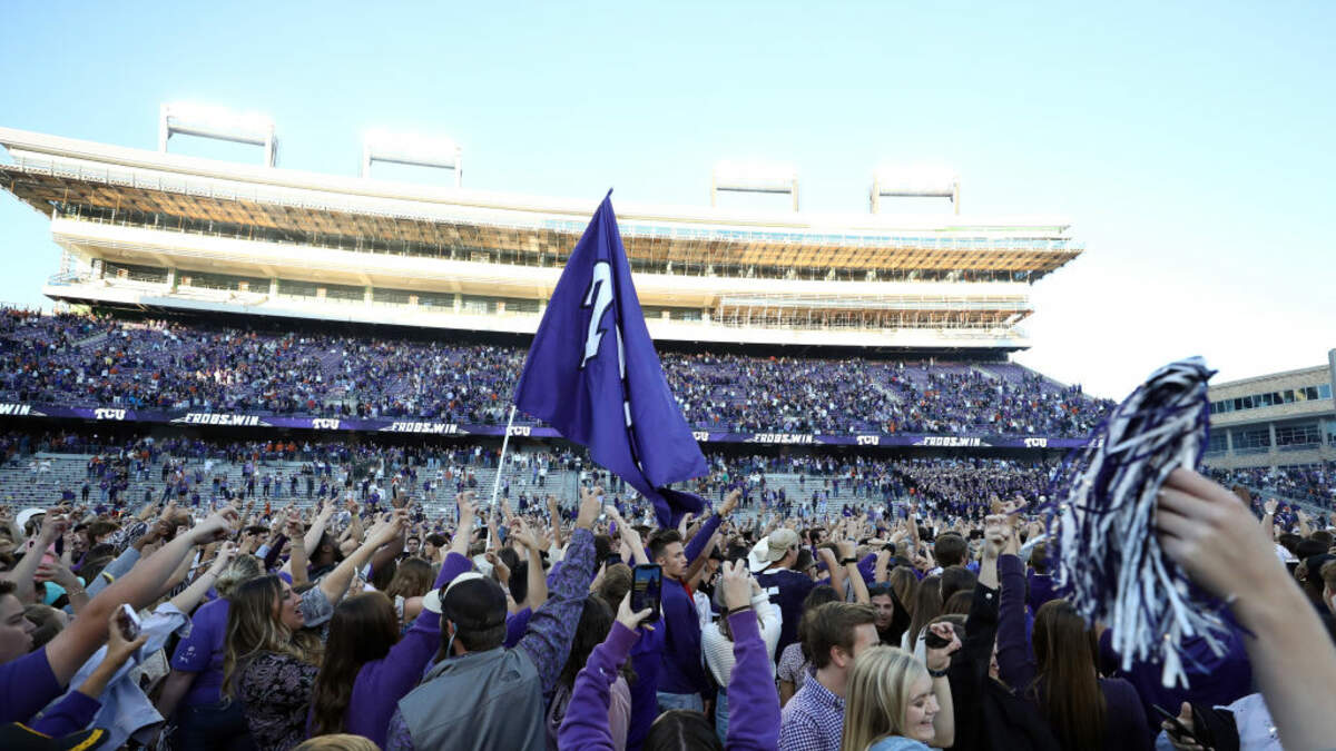 Photo: TCU fans storm the field following the Horned Frogs 37-27 victory over the Texas Longhorns at Amon G. Carter Stadium on October 26, 2019 in Fort Worth, Texas. (Getty Images)