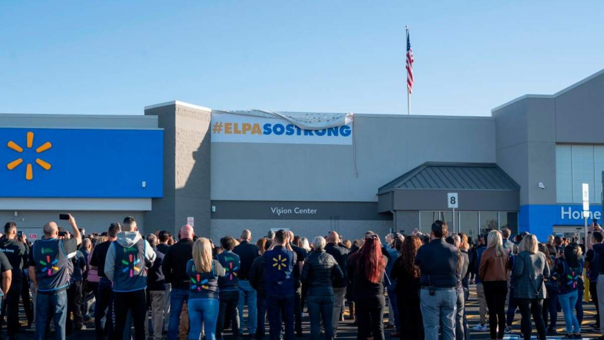Photo: A crowd gathers at the Walmart Supercenter on Gateway West in El Paso,Texas for its reopening following a mass shooting in August on November 14, 2019. (Getty Images)