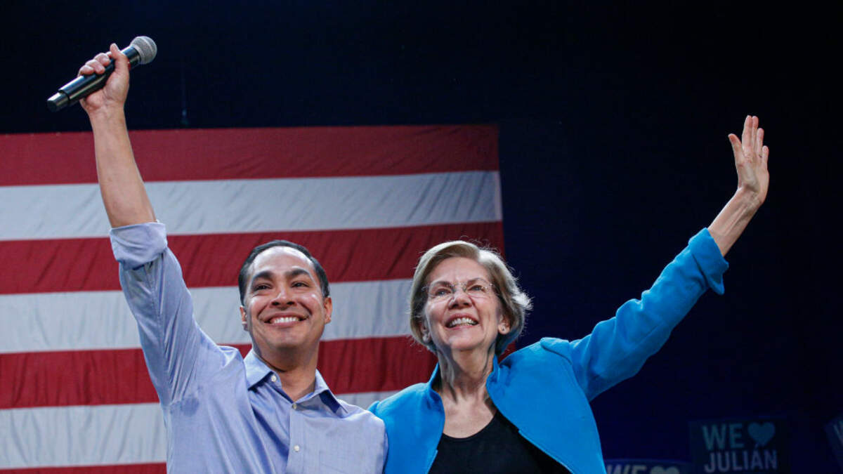 Photo: Elizabeth Warren and Julian Castro appear together at a rally in New York, New York on January 7, 2020. (Getty Images)