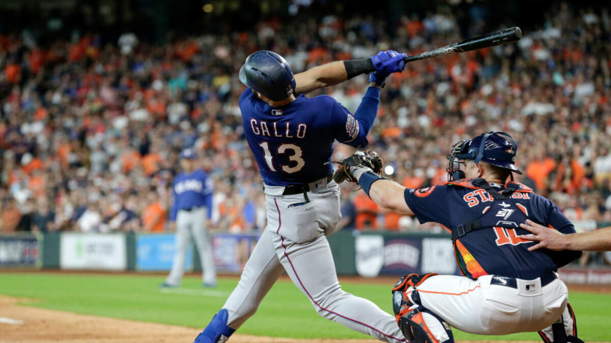 Photo: Joey Gallo takes a swing against the Houston Astros at Minute Maid Park on July 21, 2019 in Houston, Texas. (Getty Images)