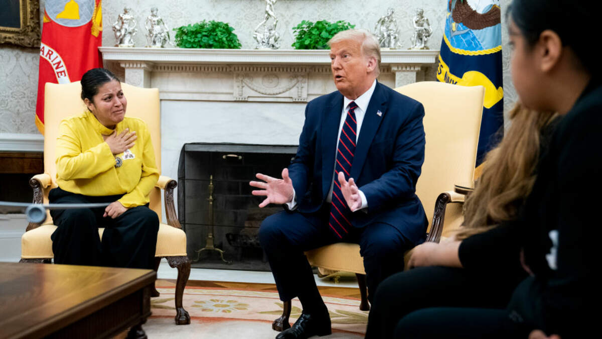 Photo: President Trump meets with Gloria Guillen, the mother of Vanessa Guillen, in the Oval Office on July 30, 2020. (Getty Images)