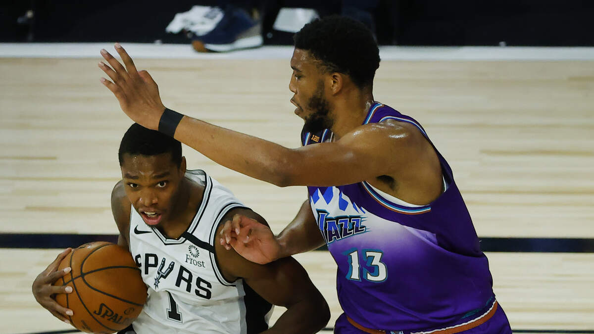 Photo: Lonnie Walker IV #1 of the San Antonio Spurs drives the ball against Tony Bradley #13 of the Utah Jazz (Getty Images)