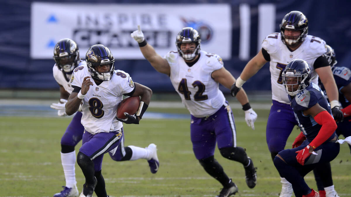 Lamar Jackson broke off a 48-yard touchdown run as the Ravens beat the Titans 20-13 in Nashville in the AFC Wild Card round. Jackson finished with 179 yards passing, 136 yards rushing, a touchdown on the ground and an interception in the win. JK Dobbins had a touchdown on the ground while Marquise Brown had seven catches for 109 yards for Baltimore. Ryan Tannehill threw for 165 yards, a touchdown, and an costly interception in the waining minutes of the fourth quarter. Derrick Henry was held to just 40 yards rushing while AJ Brown had six catches for 83 yards and a touchdown in the loss for Tennessee.