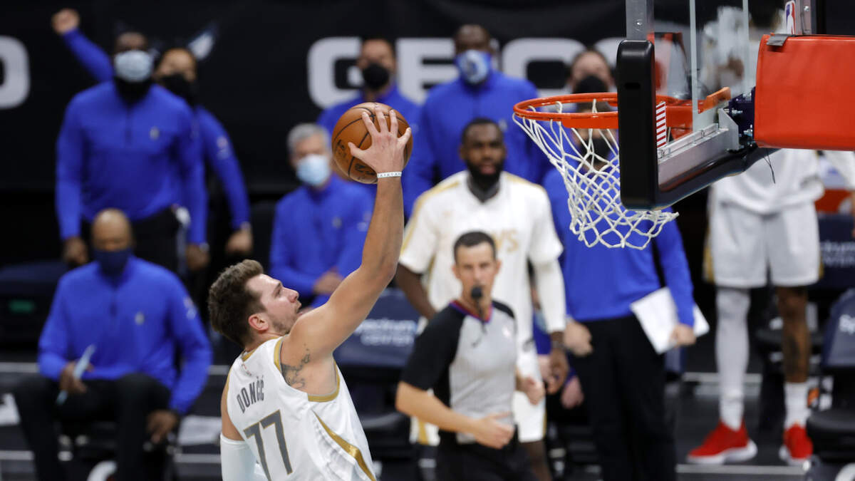 Luka Doncic had 34 points, 13 rebounds, nine assists and four blocks in the Mavericks' 104-93 win over the Hornets in Charlotte. Kristaps Porzingis scored 16 points for Dallas in his first game of the season after October knee surgery. The Mavs were shorthanded with five players out with coronavirus concerns. The Mavs won their fourth straight and play tomorrow in Milwaukee.