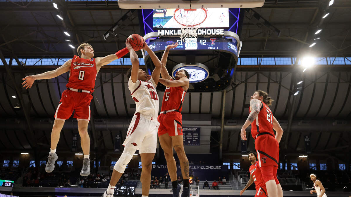 Justin Smith scored 20 points and made a key defensive rebound in the final seconds as third-seeded Arkansas held off number-six Texas Tech 68-66 in the second round in Indianapolis. Davonte Davis and Moses Moody added 15 points apiece. The Razorbacks advance to the Sweet 16 against 15th-seeded Oral Roberts. Terrence Shannon Jr. led the charge for the Red Raiders with 20 points. Texas Tech ends its season 18-and-11.