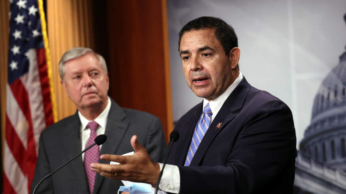 U.S. Rep. Henry Cuellar, joined by Sen. Lindsey Graham, speaks on southern border security and illegal immigration, during a news conference at the U.S. Capitol on July 30, 2021 in Washington, DC.Photo: Getty Images