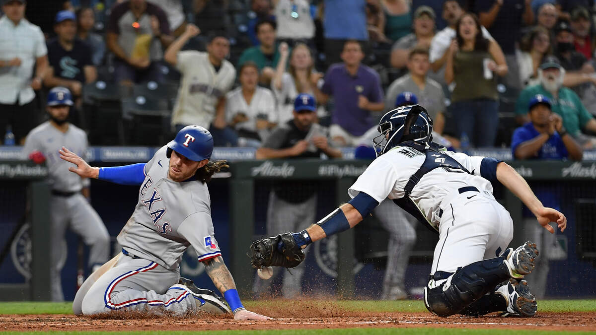 The Rangers outlasted the Mariners 5-4 in 10 innings in Seattle. Isiah Kiner-Falefa and Yohnny Hernandez each hit a RBI single in extras to lift Texas, which snapped a six-game losing skid. Brett Martin got his third in relief. The Rangers continue the series tonight.