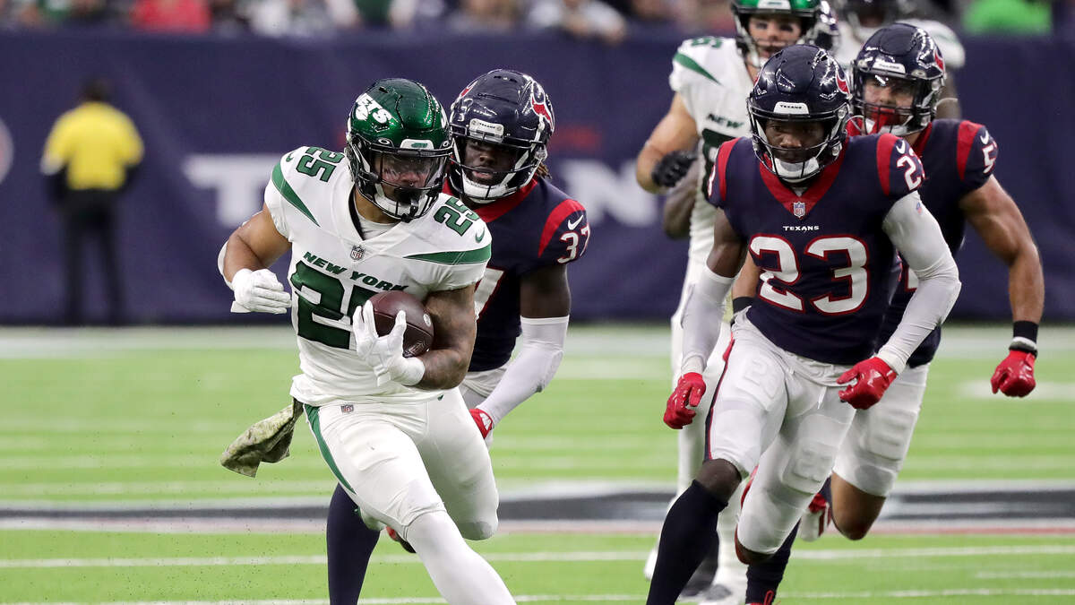 The Jets snapped a three-game losing skid as they beat the Texans 21-14 in Houston. In Zach Wilson's return from injury, the rookie quarterback completed 14-of-24 passes for 145 yards and a memorable pick. Wilson did put New York back ahead in the third quarter with his 4-yard touchdown run. Defensive end John Franklin-Myers had an impressive day with two sacks, two tackles for loss and an interception. The Jets moved to 3-and-8. Houston's offensive struggles continued as the offense was held scoreless in all but one quarter. Tyrod Taylor threw for 158 yards and two touchdowns, one of which went 40 yards to Brandin Cooks. The Texans have lost nine of their last 10 to fall to 2-and-9.
