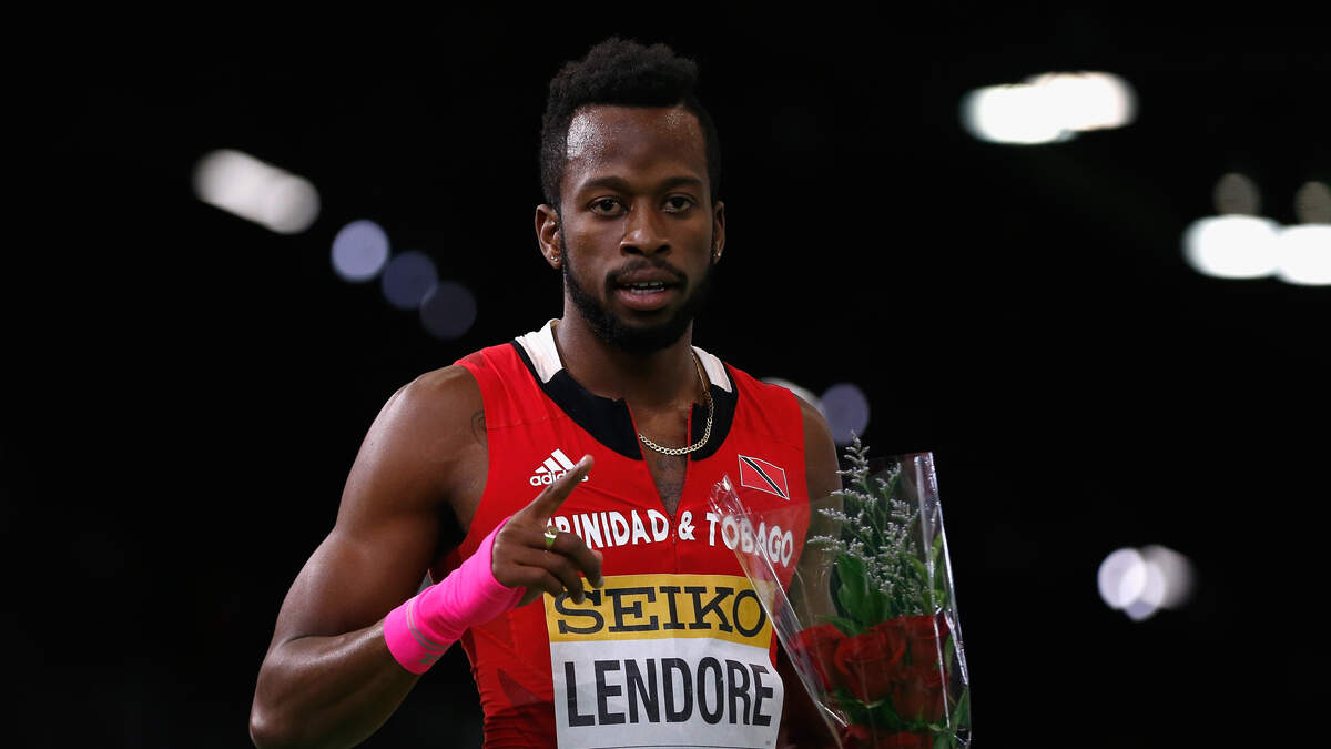 Bronze medallist Deon Lendore of Trinidad and Tobago celebrates after the Men's 400 Metres Final during day three of the IAAF World Indoor Championships at Oregon Convention Center on March 19, 2016 in Portland, Oregon. Photo: Getty Images