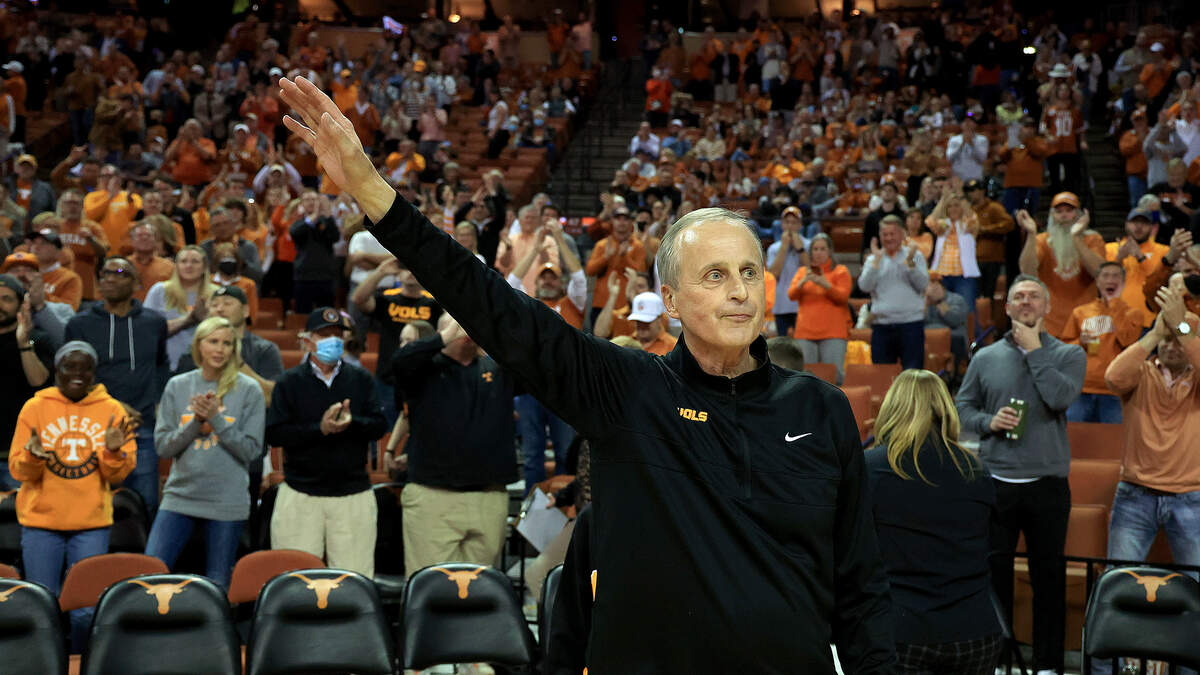 Head coach Rick Barnes of the Tennessee Volunteers and former head coach of the Texas Longhorns acknowledges the crowd at the Frank Erwin Center in Austin.Photo: Getty Images