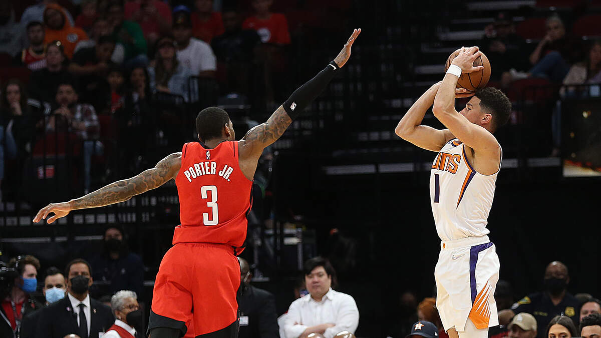 Devin Booker poured in 15 of his game-high 36 points in the third quarter as the NBA-leading Suns routed the Rockets 129-112 in Houston. Mikal Bridges netted 26 points, while Torrey Craig had 21 to go with 14 rebounds while starting in place of Jae Crowder. Phoenix continues to lead the league at 56-and-14. Jalen Green scored 22 points to lead the Rockets, who fell to an NBA-worst 17-and-52.
