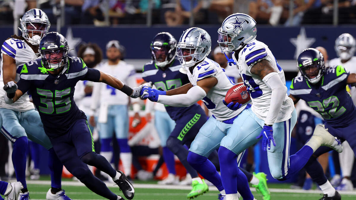 Juanyeh Thomas #40 of the Dallas Cowboys carries the ball on a kickoff return against the Seattle Seahawks in an NFL preseason football game at AT&T Stadium on August 26, 2022 in Arlington, Texas. (Photo by Richard Rodriguez/Getty Images)Photo: Getty Images