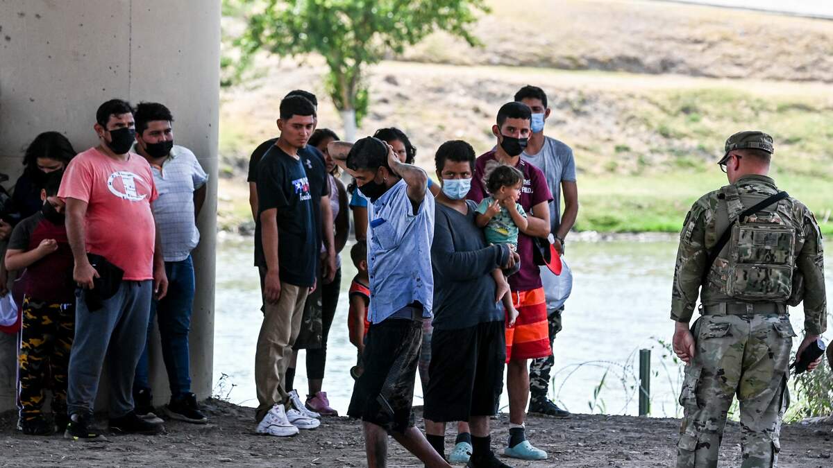 Migrants are apprehended by US Border Patrol and National Guard troops in Eagle Pass, Texas, near the border with Mexico. (Photo by CHANDAN KHANNA / AFP) (Photo by CHANDAN KHANNA/AFP via Getty Images)Photo: Getty Images