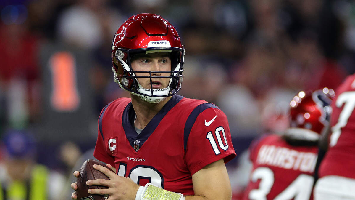 Davis Mills #10 of the Houston Texans throws the ball against the Philadelphia Eagles in the second quarter at NRG Stadium on November 03, 2022 in Houston, Texas. (Photo by Carmen Mandato/Getty Images)Photo: Getty Images
